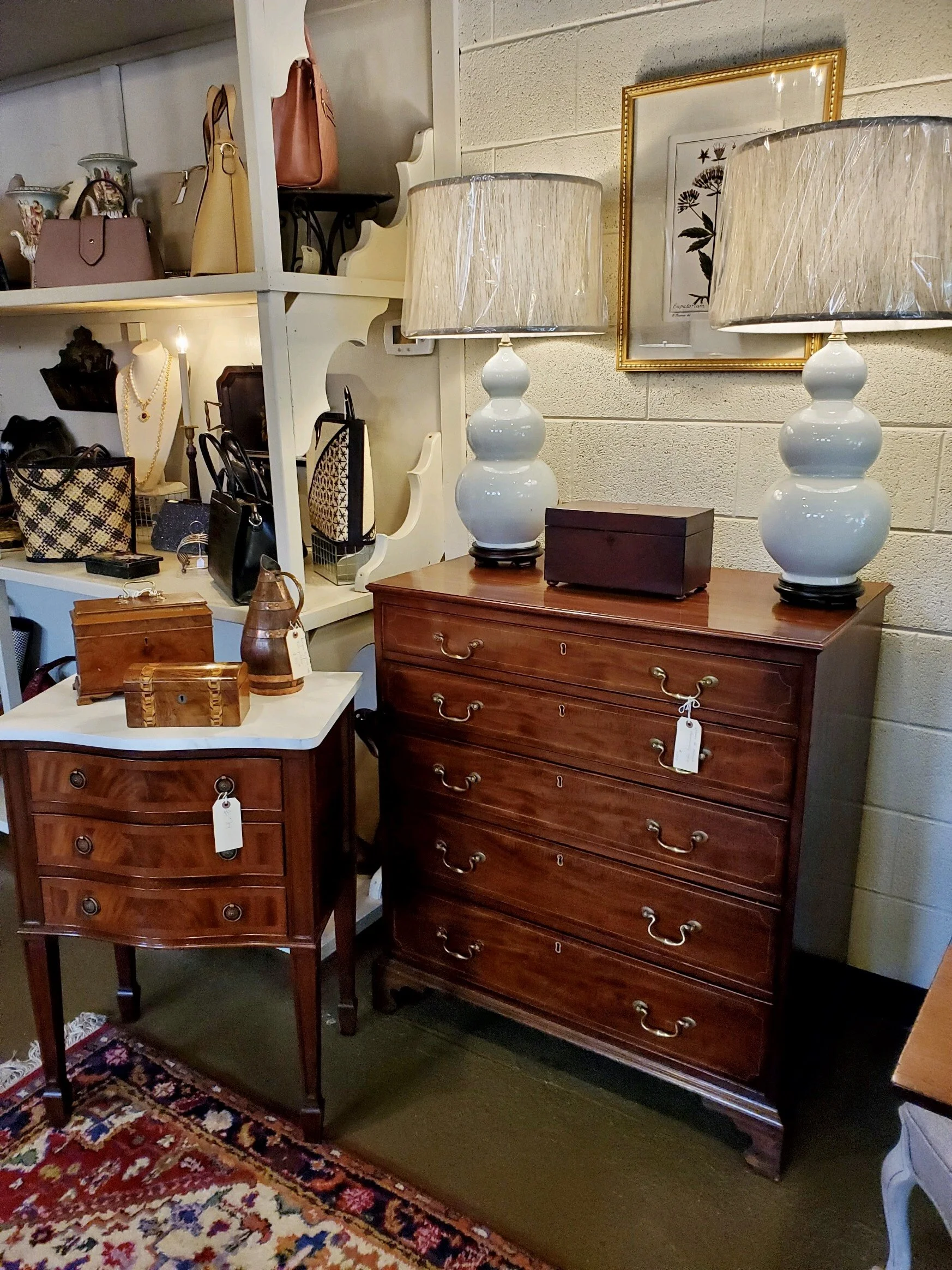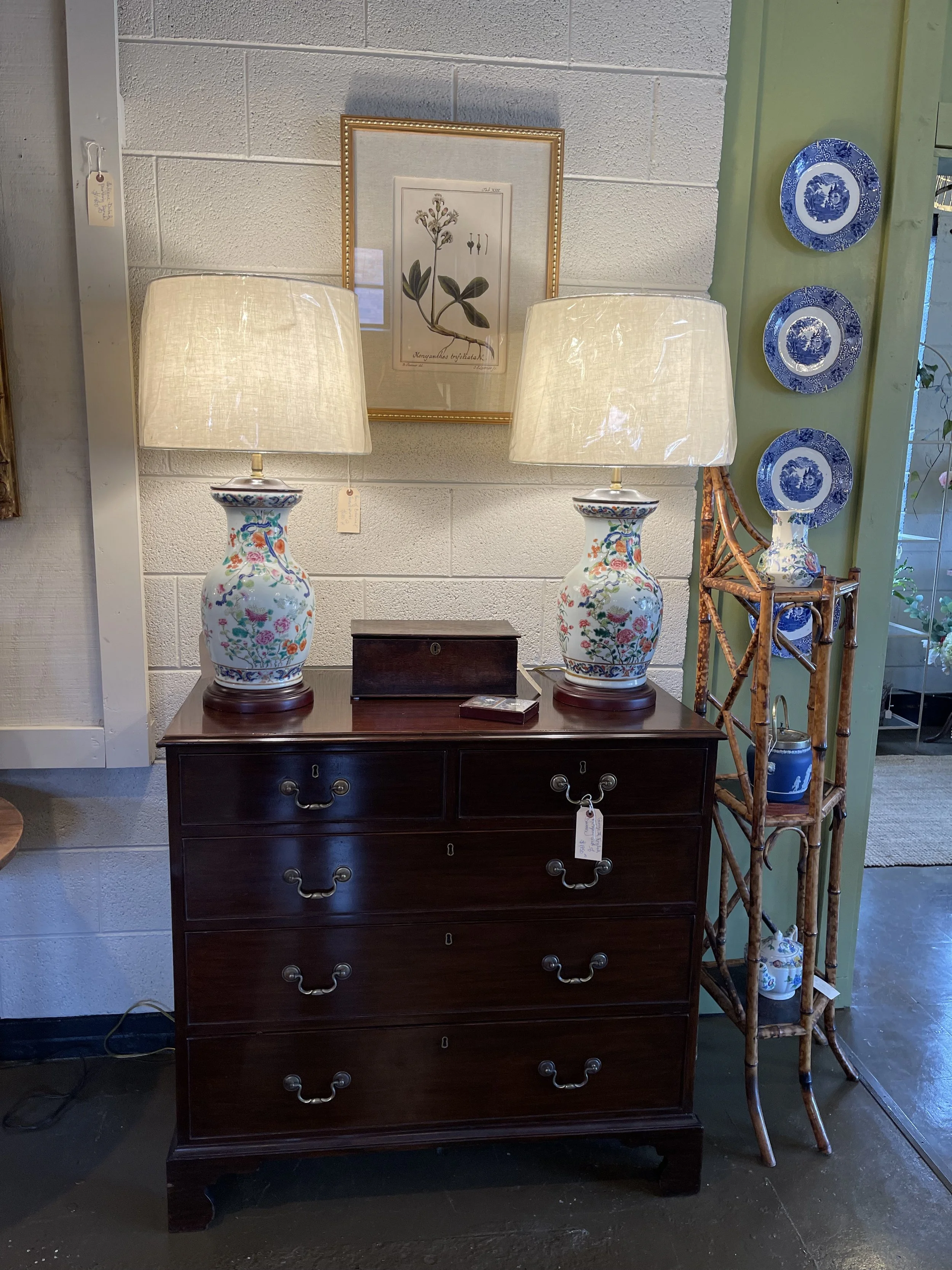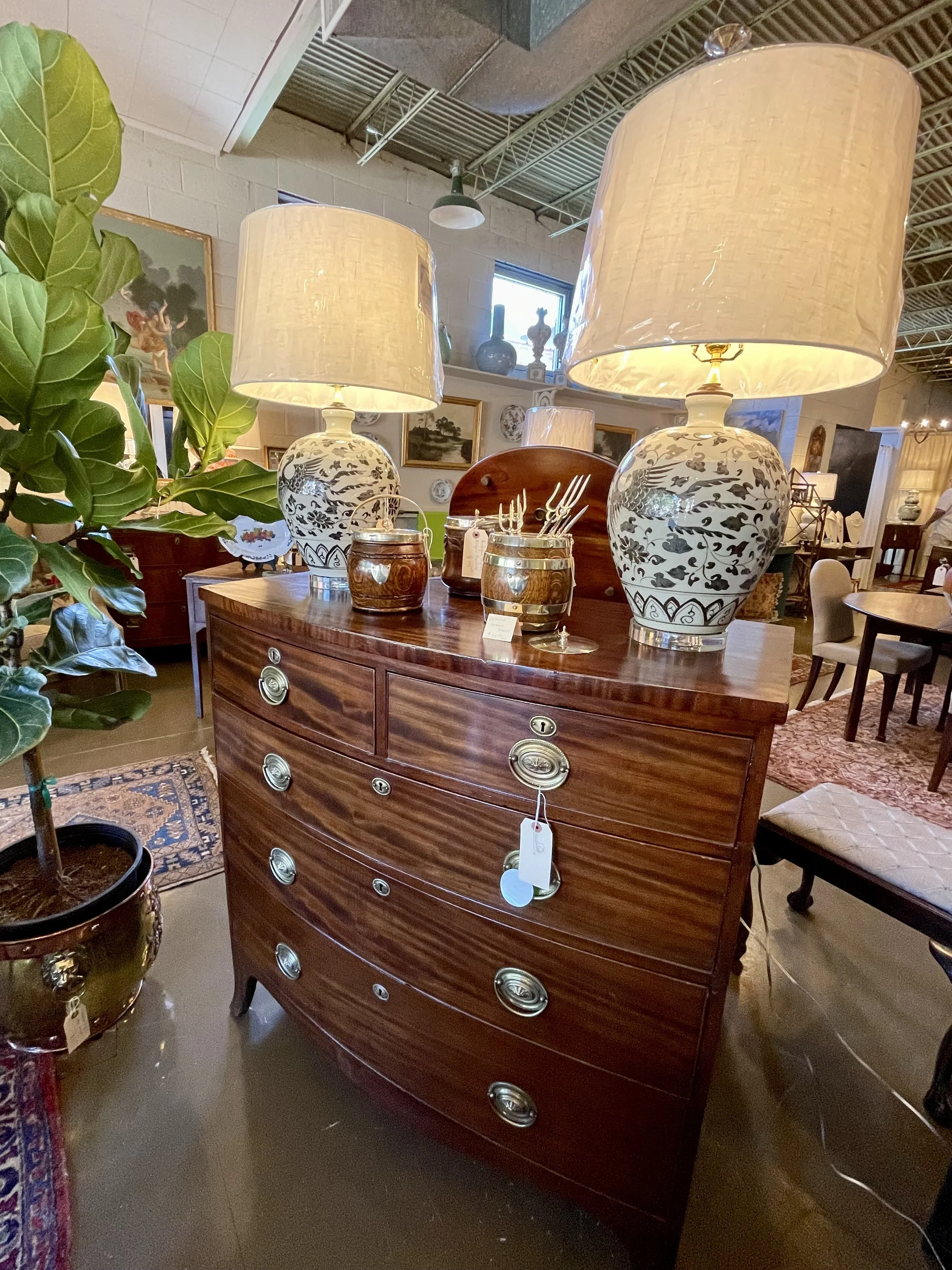 HH Walker Mahogany Bow Front Chest with Bird Lamps.jpg